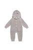 Let your little one snuggle up in the adorable Bear Knit Onepiece in Moleskin Marle. Crafted from 100% cotton, this cosy all-in-one features a soft knit texture, coconut button details, front pockets, and the sweetest bear ears on the hood. Perfect for keeping your child warm while looking irresistibly cute.