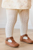 A beautiful essential for cooler days, the Cable Weave Tight – Parchment is crafted in a soft neutral tone to complement any outfit. With a classic cable knit texture and a snug, comfortable fit, these tights are perfect for layering under dresses, skirts, or rompers.