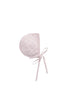 - Light pink marled knit bonnet with textured detailing