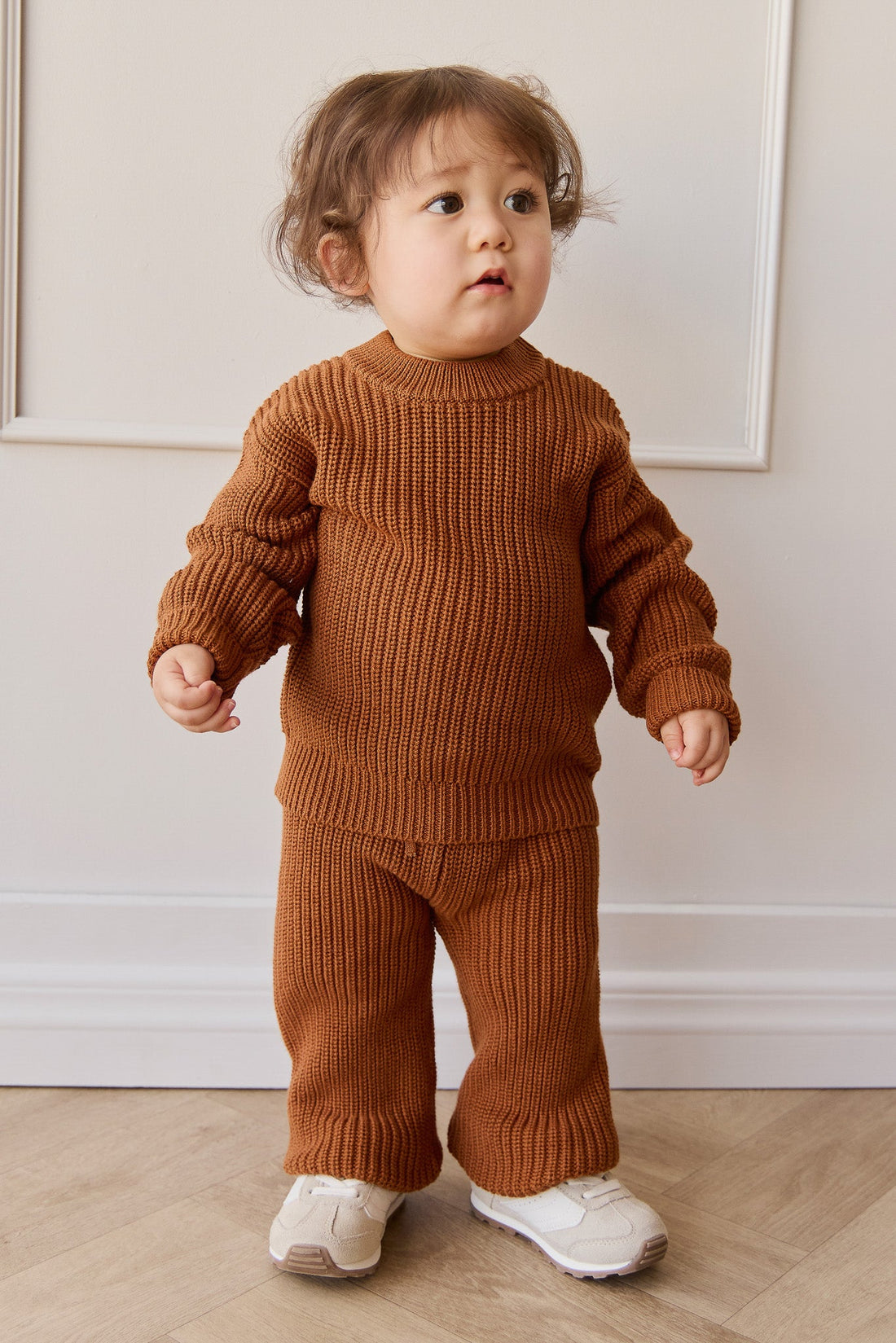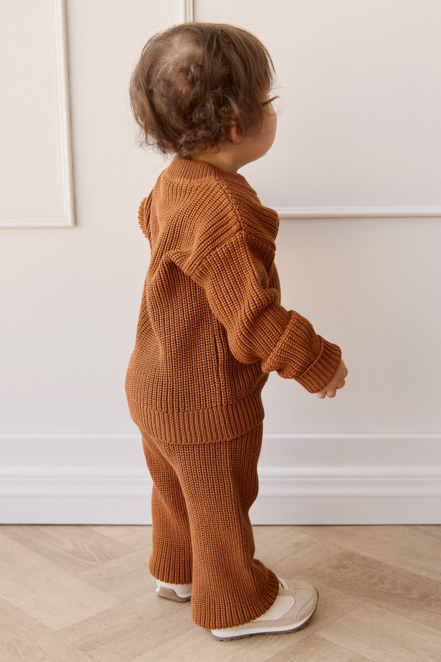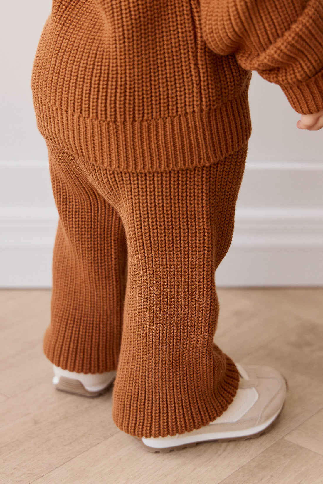 These super soft and snuggly knitted pants will keep those little legs warm and comfortable. Featuring an elasticated waist and decorative waist tie.
