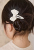 The Nylah Clip – Parchment is a sweet and elegant accessory, featuring two delicate bow clips in a soft parchment tone. Perfect for adding a charming touch to any hairstyle, these clips are designed for both style and practicality.