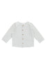 The Organic Cotton Albie Top – Variegated Stripe Shoreline is a timeless piece with a soft, neutral stripe pattern inspired by shoreline tones. Featuring a round neckline, front button closure with delicate brown buttons, and a single chest pocket, this top blends classic style with everyday comfort. Pair it with the matching Albie Pant for a beautifully coordinated look.