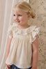 The Organic Cotton Banks Blouse in Parchment is a beautifully delicate piece, perfect for adding a touch of charm to your little one’s wardrobe. Featuring soft flutter sleeves, a gentle ruffle collar, and a floaty silhouette, this blouse is ideal for layering or wearing on its own during warmer days.