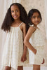 The Cosette Dress in Justine Parchment is a dreamy, vintage-inspired piece designed for elegance and comfort. Featuring a soft parchment base adorned with a delicate floral print, this dress includes slender straps and a button-down front for a classic, airy silhouette—perfect for warm days or layering with a cardigan.