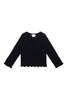 Delicate and versatile, the Fine Rib Cotton Agathe Top – Ebony features a soft ribbed texture, long sleeves, and a dark ebony black hue. With scalloped edges at the hem and cuffs, this top adds a dainty touch to everyday wear—perfect for layering or wearing on its own.