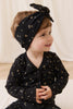 The Organic Cotton Modal Cardigan – Dina Ebony is a beautifully soft and stretchy knit featuring a classic V-neckline, button-down front, and delicate ribbed texture. In a deep ebony tone, this cardigan is adorned with subtle scattered floral accents in white and yellow, adding a touch of charm to its timeless silhouette.
