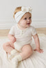 This gorgeous blend is the perfect combination of soft, lightweight, and stretchy. Modal is an extremely forgiving fabrication; it maintains elasticity and is incredibly stain, pill and shrink resistant. Your little one will be super comfortable in this beautifully versatile bodysuit.