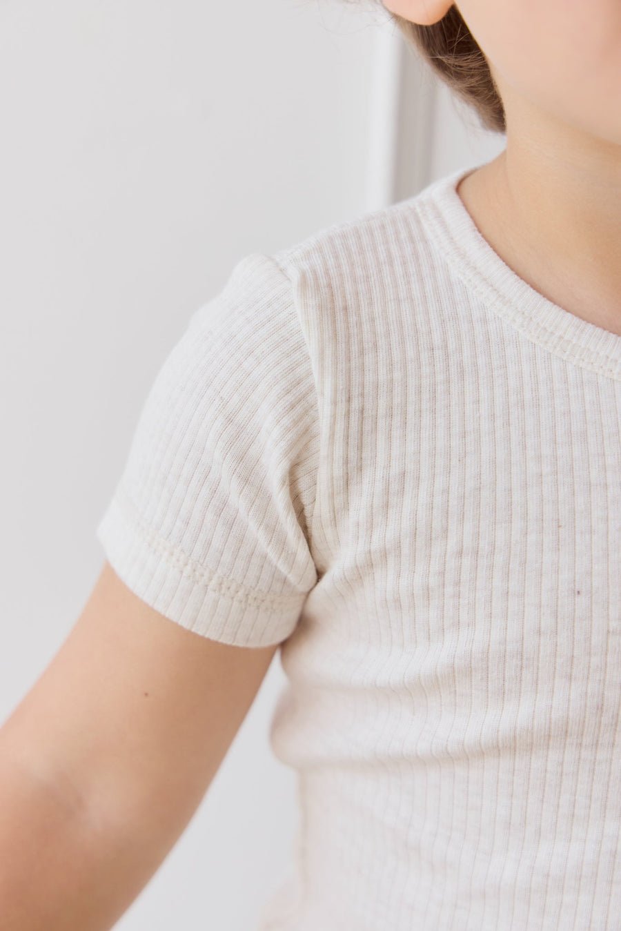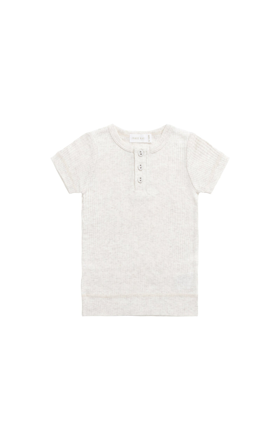 Organic Cotton Modal Henley Tee - Oatmeal Marle