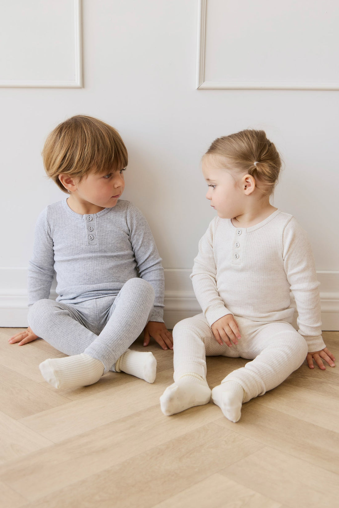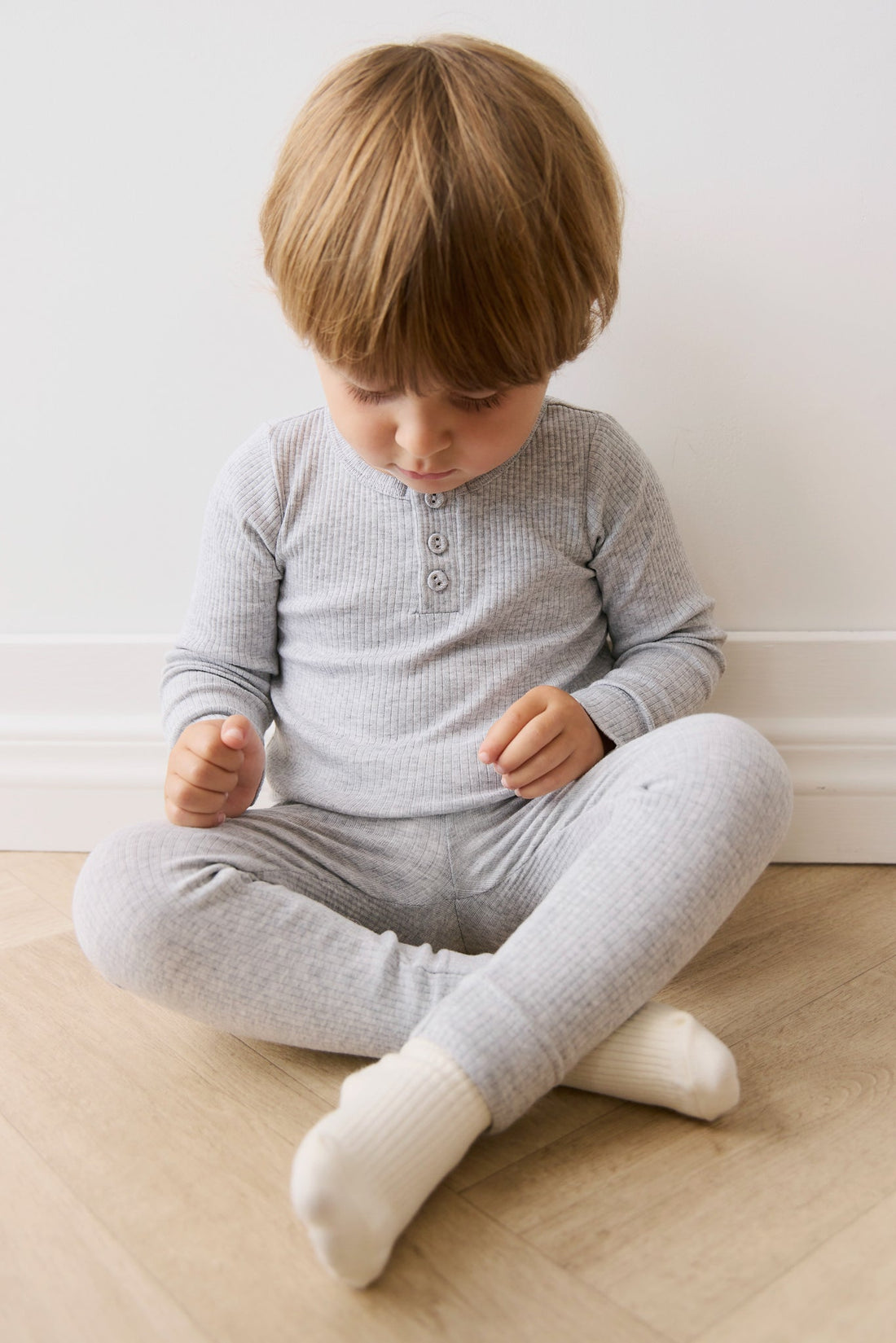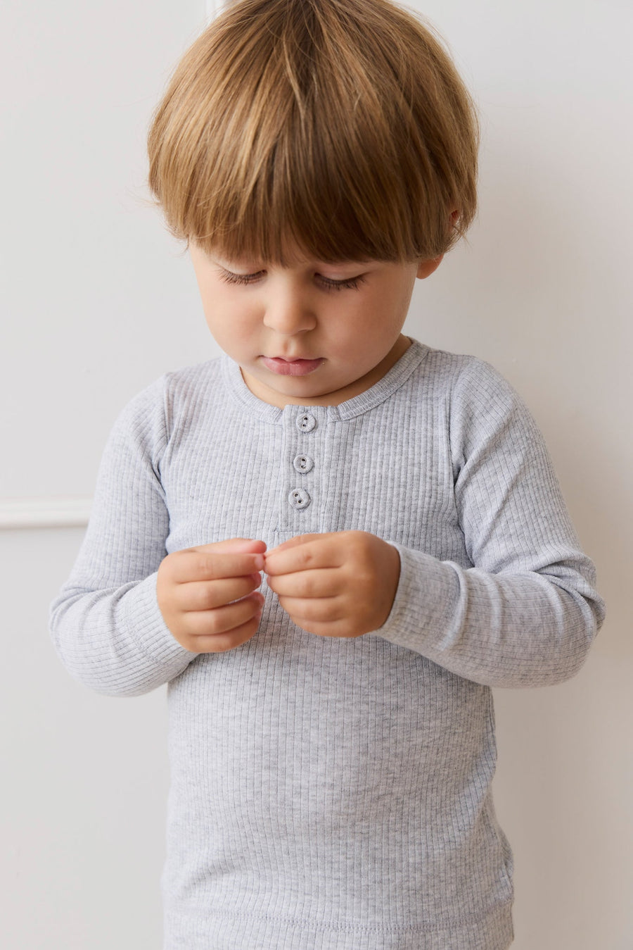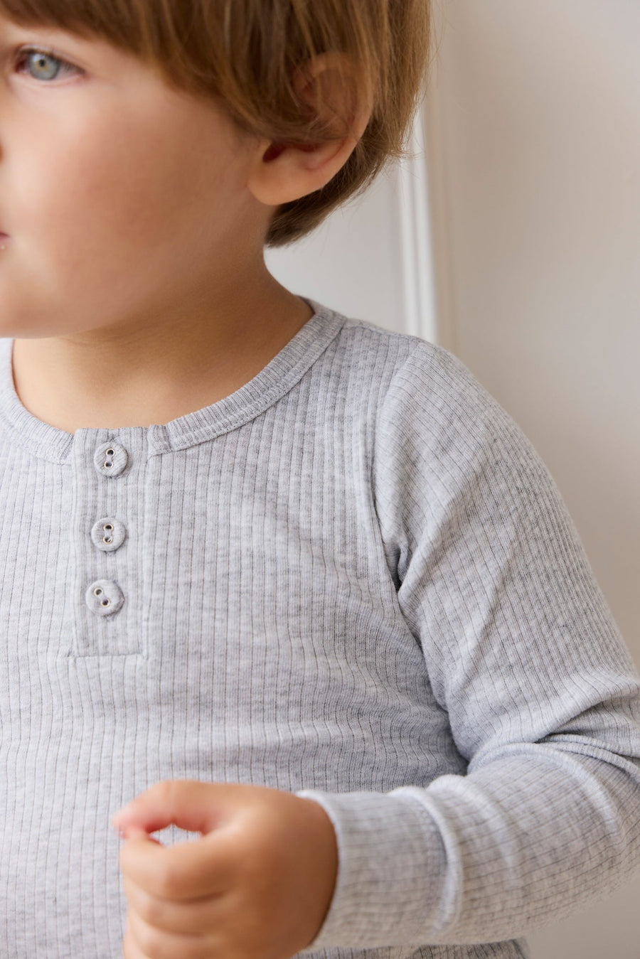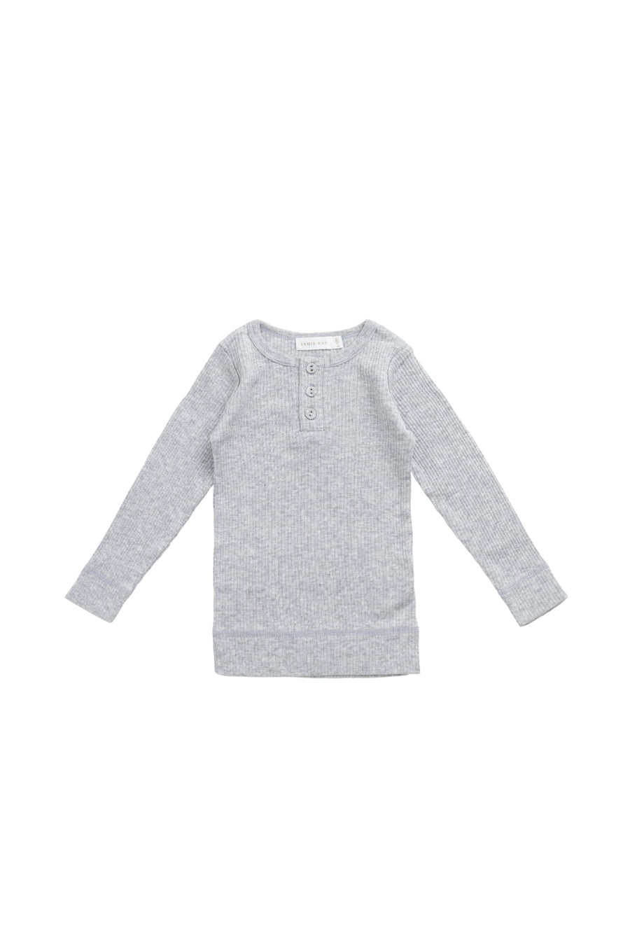 Organic Cotton Modal Long Sleeve Henley - Light Grey Marle