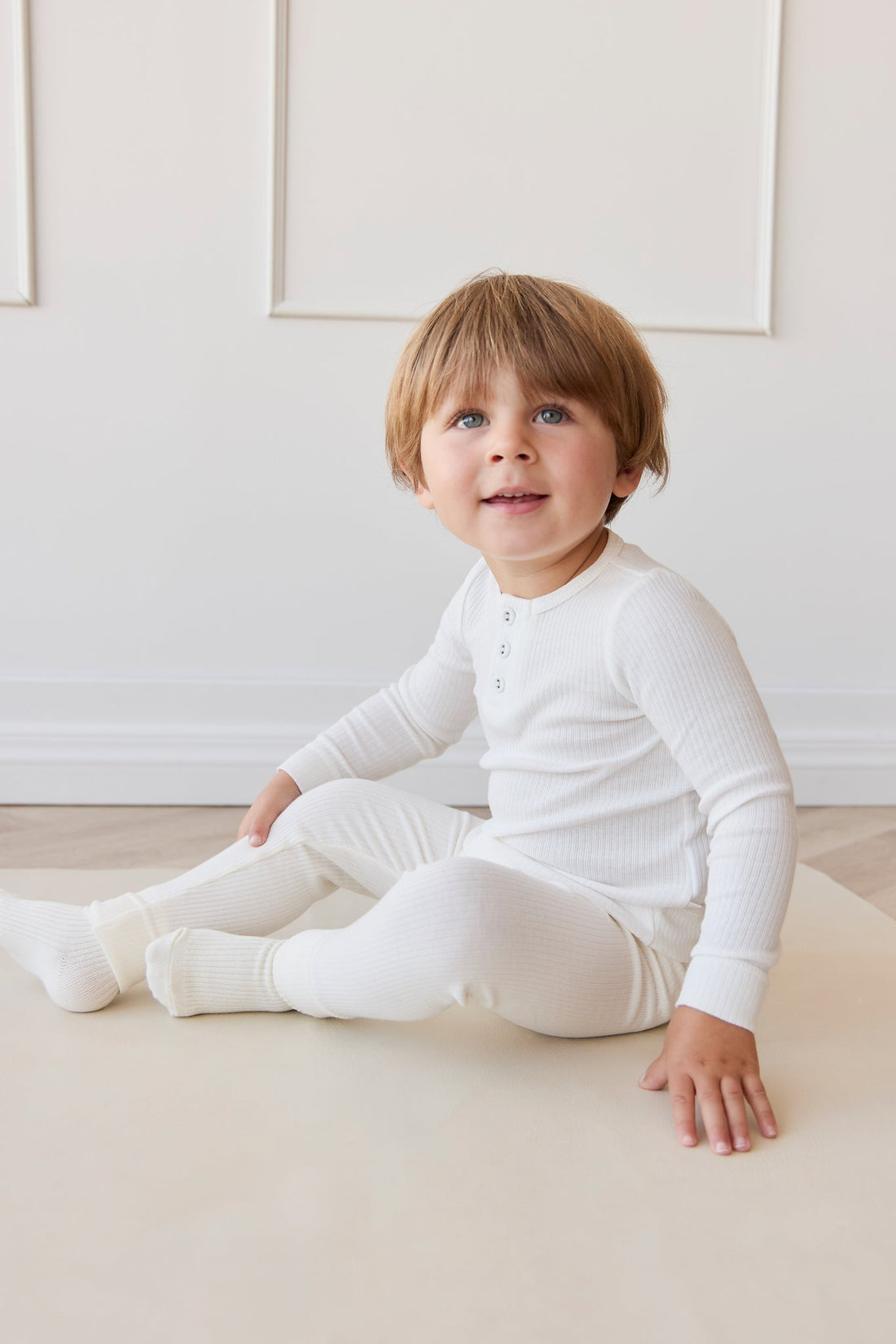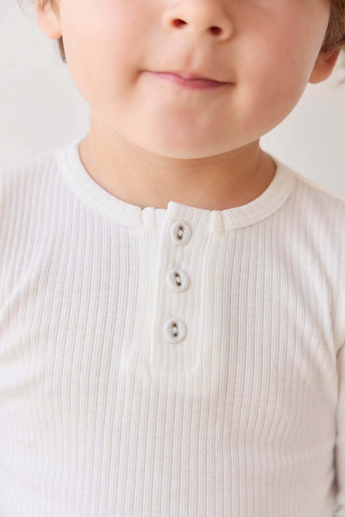 Organic Cotton Modal Long Sleeve Henley - Milk