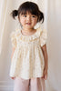 The Organic Cotton Muslin Banks Blouse – Dina Antique is a beautifully dainty piece, perfect for layering or wearing on its own. Featuring a soft antique hue with a scattered floral print, this sleeveless blouse includes a ruffled collar that gently cascades over the shoulders, adding a touch of vintage charm. The gathered waistline creates a subtle flare, making it both comfortable and elegant.