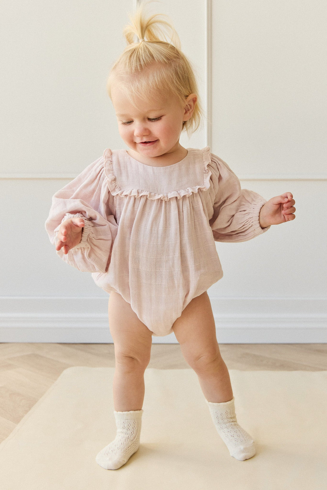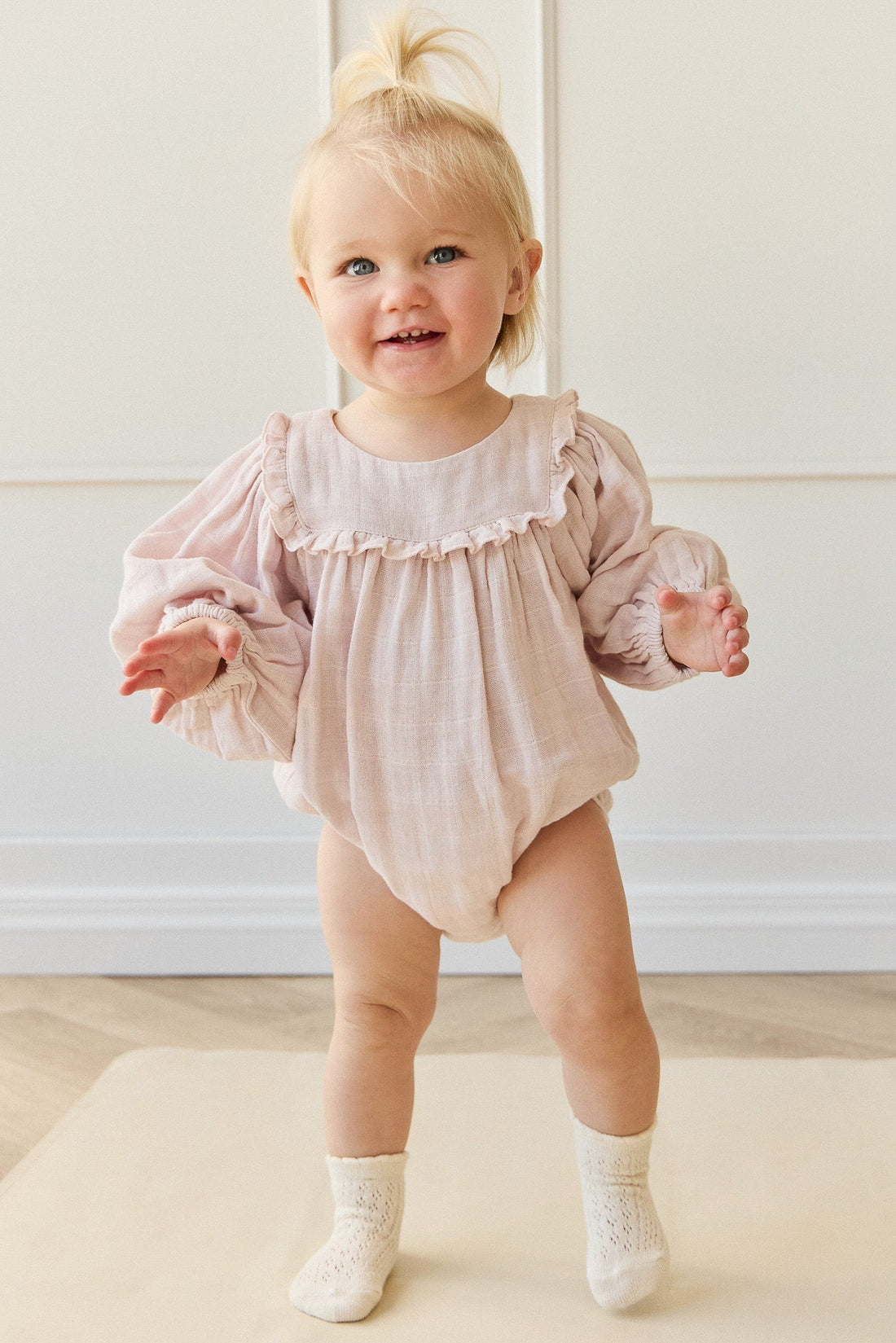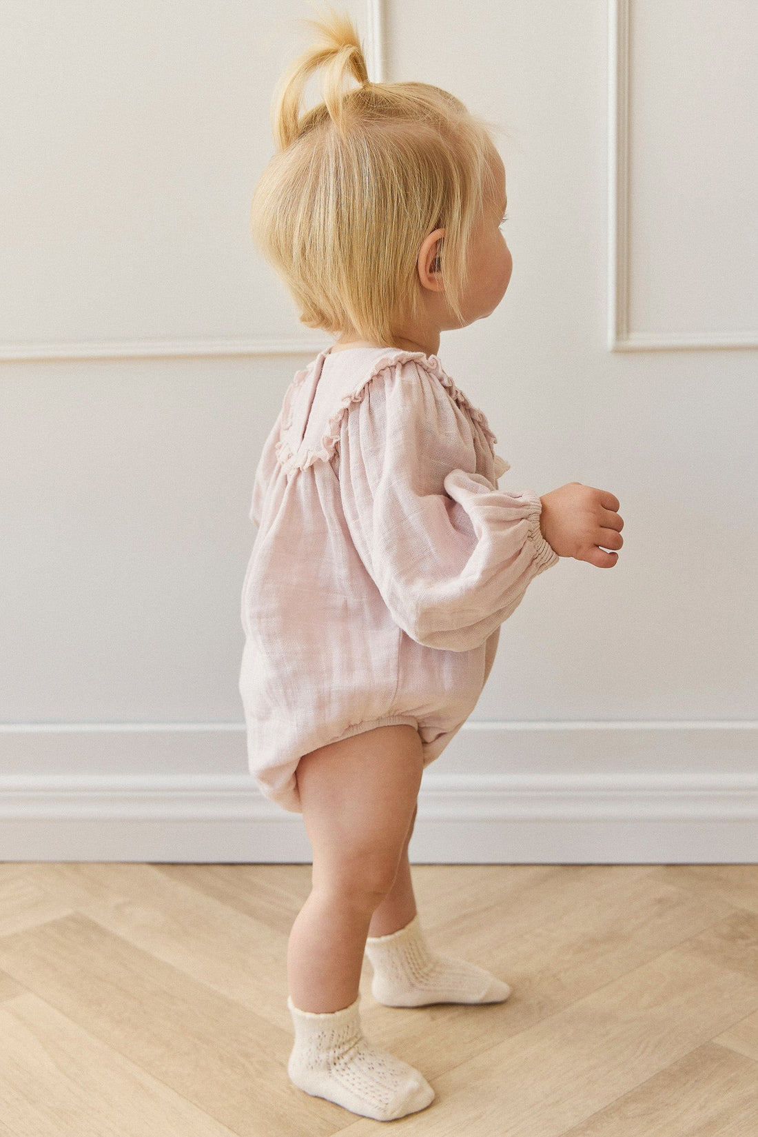 Organic Cotton Muslin Frances Playsuit - Pale Lilac Childrens Playsuit from Jamie Kay USA