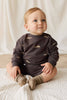 The Peyton Sweatshirt in Pilot Planes Bistre brings playful charm to everyday comfort. This brown sweatshirt features a whimsical aeroplane print and is crafted from a premium blend of 95% Organic Cotton and 5% Elastane, offering both softness and stretch for active little ones.