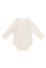 The Marina Bodysuit in Sweet Magnolia Simple is a beautifully designed essential for your little one. Featuring a long sleeve wrap-style silhouette, this bodysuit ties gently at the side and includes dome closures at the crotch for easy changing. Crafted from 100% Organic Cotton, it offers breathable comfort and a delicate pointelle knit for timeless charm.