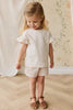 Delicate and timeless, the Antoinette Top in Blushed Rose is a dreamy addition to your little one’s wardrobe. Crafted from 100% Pima Cotton, this piece features dainty ruffled sleeves and two subtle domes on the shoulder for easy dressing. The soft blush hue adds a gentle charm, perfect for layering or wearing on its own.